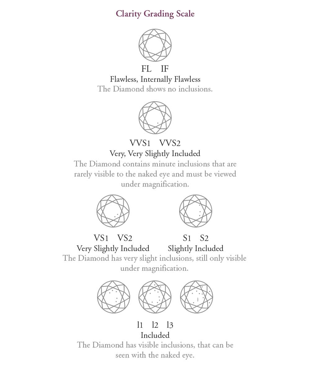 All gem-grade diamonds can receive a clarity rating based on an industry standard scale ranging from FL (flawless) to I3 (heavily included).Qasim Jewels’ stricter standardsfor clarity ensure that there are no rude surprises and our gemologists are always on alert for serious diamond imperfections: